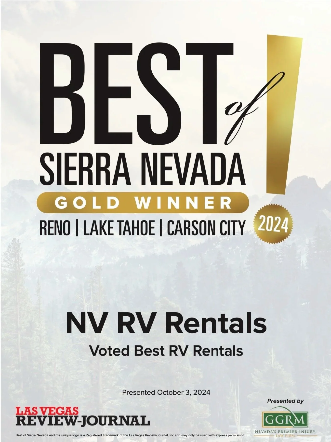 Voted Best RV Rental Co. in Sierra Nevada!