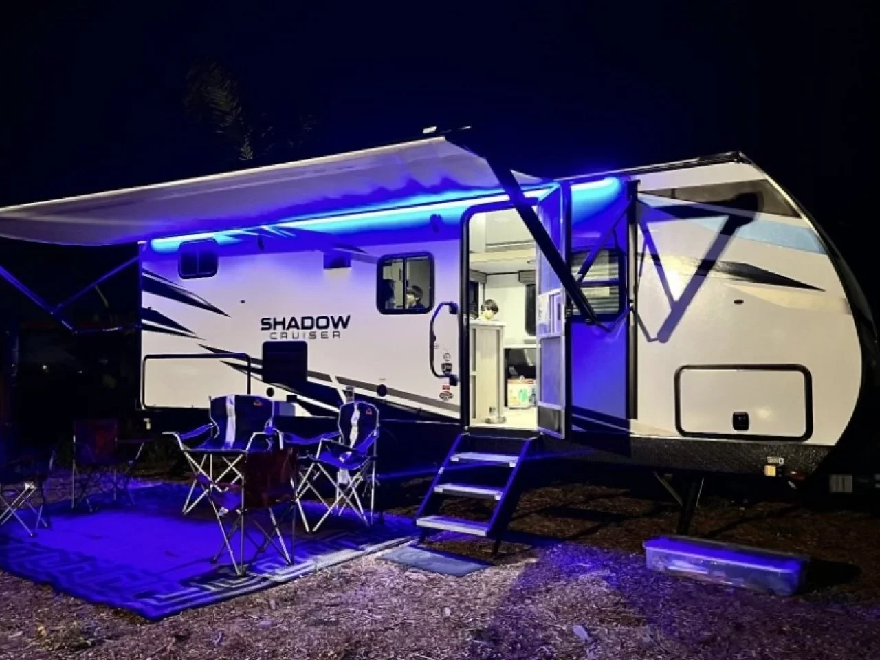 Come see just how fun and easy camping can be in this Shadow Cruiser travel trailer. Before you check out the inside of this model, take a peek at the outside kitchen. Here you will find a cabinet, a refrigerator, a two-burner swing-out cooktop, and a gas grill. Now you can spend more time outdoors with your family while still being able to fix meals throughout the day. Inside and outside you will find plenty of storage compartments like the large pantry, the linen and wardrobe closets, the exterior pass-through storage, and the additional exterior storage compartments. There is also a power awning with LED lights for you to enjoy a good time outdoors whether day or night!
